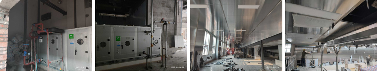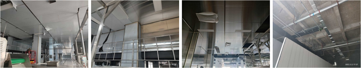 2021-12-28四川丰泰食品科技有限公司厂房装修现场:不锈钢施工,空调管道安装
