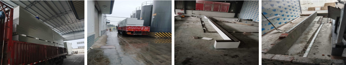 2021-02-18广汉市福旺油脂有限公司厂房装修现场:挡水墙贴瓷砖完成70% 排水完成80% 彩钢板材料到现场