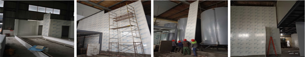 2021-02-24广汉市福旺油脂有限公司厂房装修现场:彩钢板隔墙完成70%,调配间钢管架搭设完成