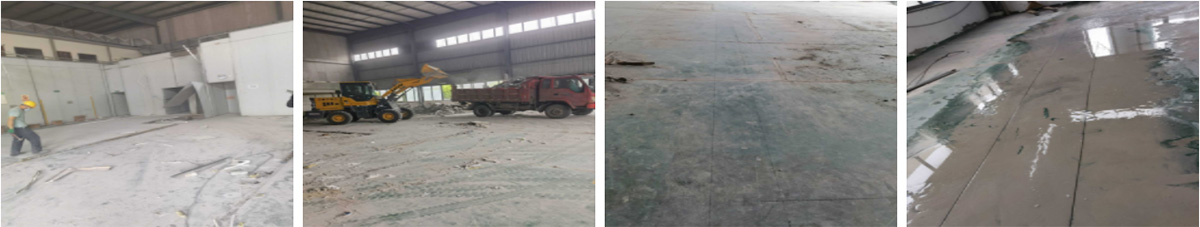 2022-3-21四川小麻婆食品科技有限公司厂房装修现场:1.旧厂房拆除完成 2.建渣处理完成;3.放线切割