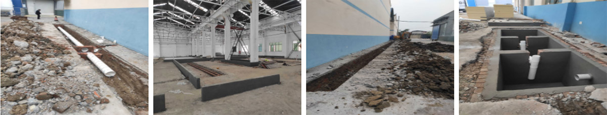 2022-11-04四川省曾食记食品有限责任公司二期厂房装修现场:土建工程完成百分之八十 水沟砌砖完成,抹灰完成,贴砖完成百分之八十 挡水墙完成百分之九十 隔油施工完成。