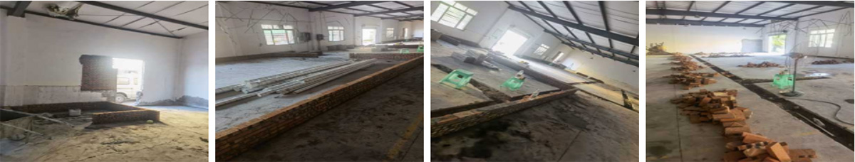 2022-8-20重庆民茂食品有限公司厂房设计装修现场:1.砌挡水墙,挡水墙抹灰⒉安装排水管3.不锈钢水沟焊接