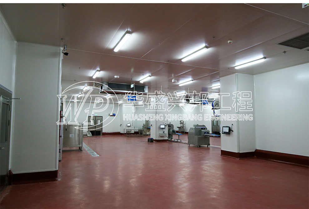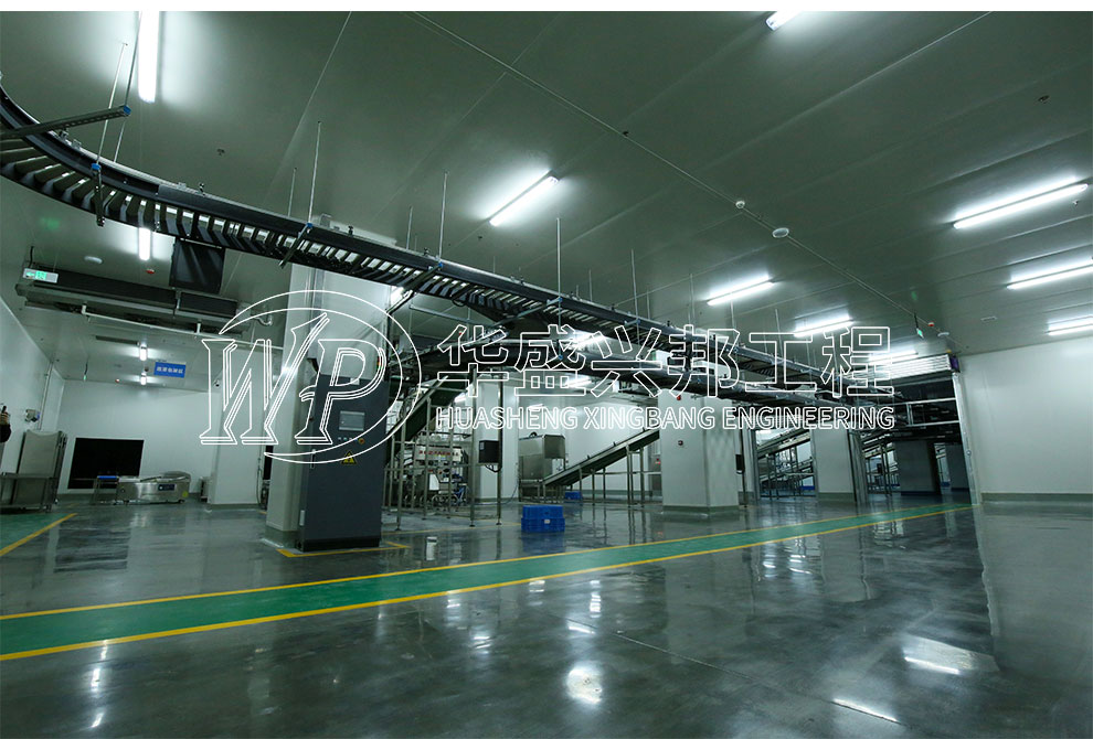 华盛兴邦承接成都天府智慧大厨房科技有限责任公司园区厂房设计、工程施工项目,是一家大型中央厨房建设,集净菜加工、主食加工、仓储保鲜、冷链物流产业链为一体的大型智能化厨房。目前部分车间已经装修完工。