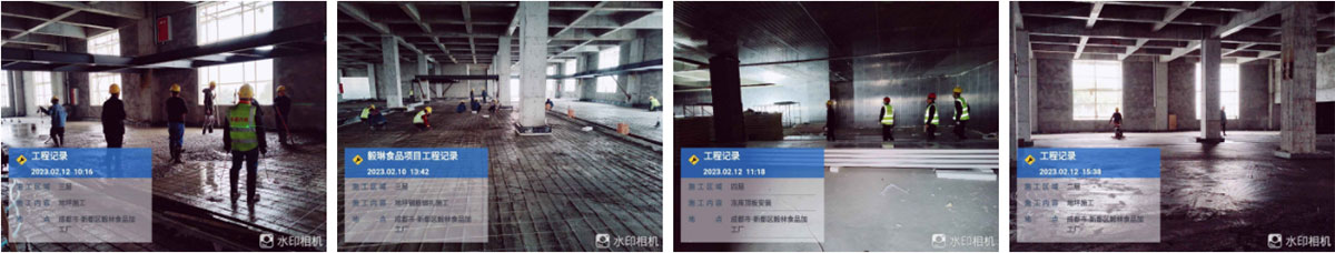 2023-02-12 新都区毅琳食品加工坊厂房装修施工现场:1:三层地坪施工完成50% 2、二层地坪施工完成90% 3、二层设备平台角钢装50% 4、四层冻库顶板完成30% 5、二层挡水墙贴砖完成70% 6、四层冷媒井拆除吊洞完成 8、三层冻库地坪施工完成60%