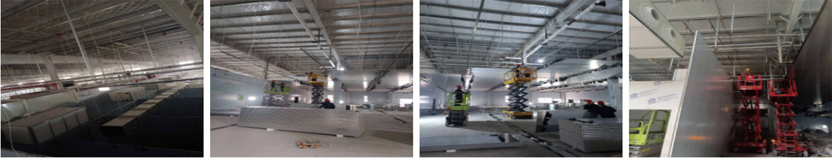 2024-1-8四川罗城牛肉食品有限公司厂房装修现场:净化板材安装,吊顶施工