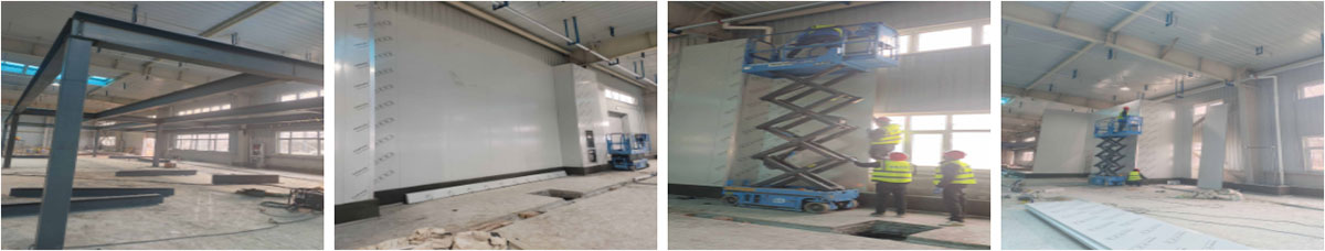 2024-03-24临夏州伊客拉穆清真食品有限公司厂房装修现场:隔断施工
