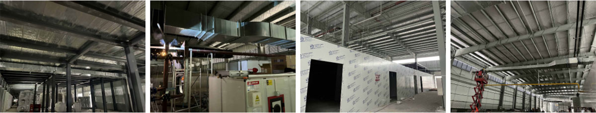 2024-3-30湖北旺丰辉食品有限公司厂房装修现场:风管安装