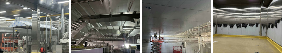 2024-4-5湖北旺丰辉食品有限公司厂房装修现场:吊顶 烟罩安装