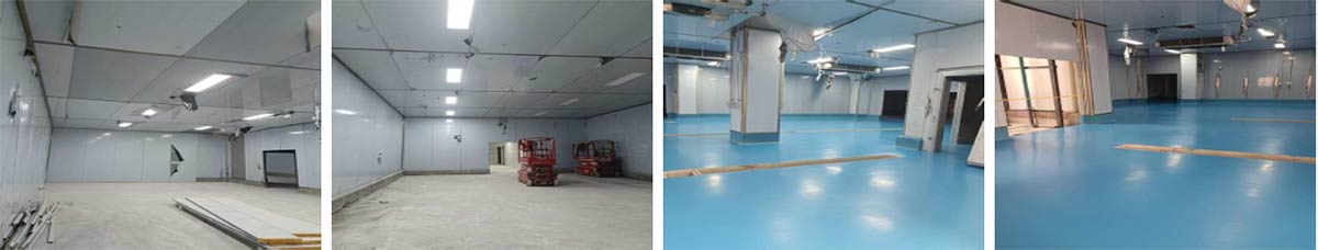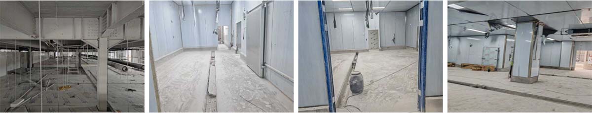 2025-3-17肉屿味项目厂房施工现场:车间地坪打磨施工,吊顶施工