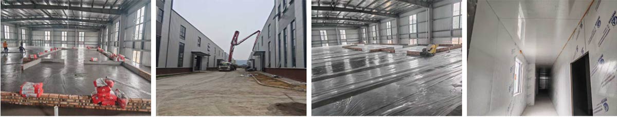 2025-5-8肉屿味项目厂房施工现场:外部钢构施工,内部地坪施工