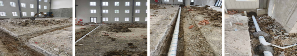 2024-4-25四川洁丽生物科技有限公司厂房装修现场:排水管道安装