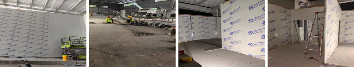 2024-9-30眉山佳泉矿泉水项目厂房装修现场:板材施工