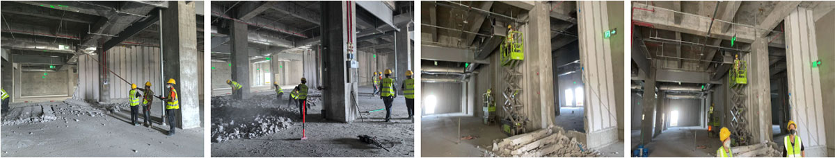 进达全项目厂房装修现场:现场破碎墙体