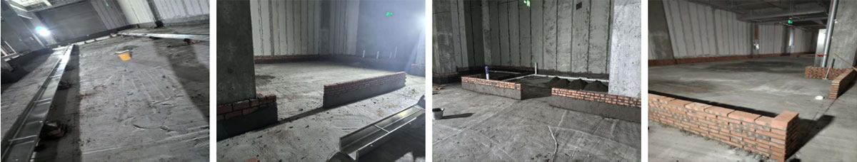 优食农仓项目厂房装修施工现场:挡水墙排水沟施工