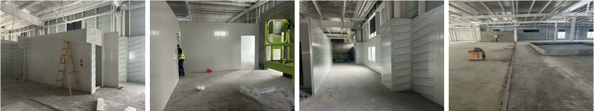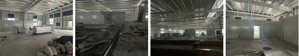 皇潮阁绵竹项目厂房装修施工现场:隔断施工