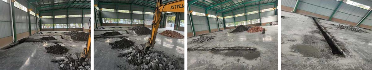 千里香蛟龙港项目厂房装修现场:排水沟开挖