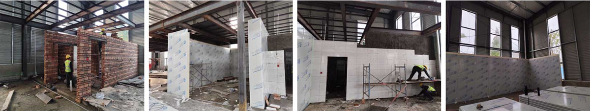 江油小掌门项目厂房装修现场:墙体隔断施工