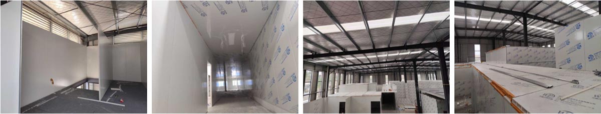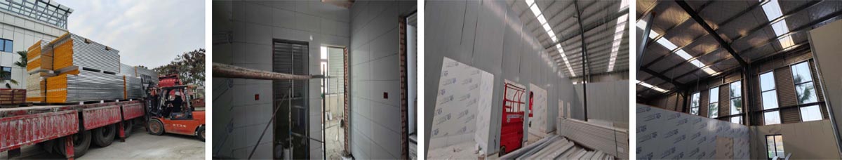 江油小掌门项目厂房装修现场:板擦到场,隔断施工