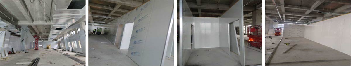遂宁九烁食品厂房装修现场:风管吊装,隔断施工