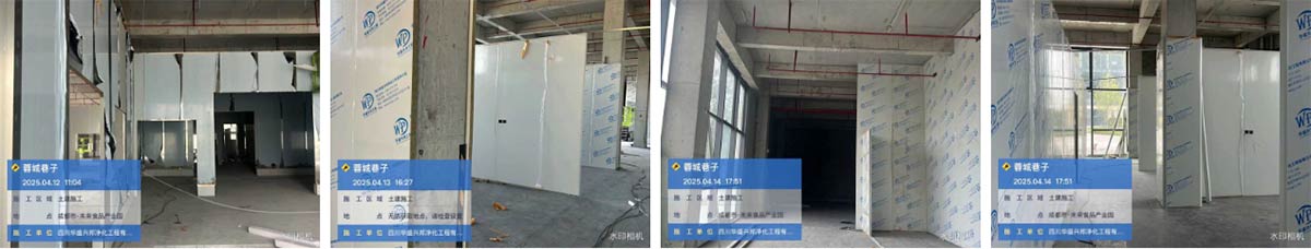 温江蓉城巷子调味品项目厂房装修现场:净化隔断施工