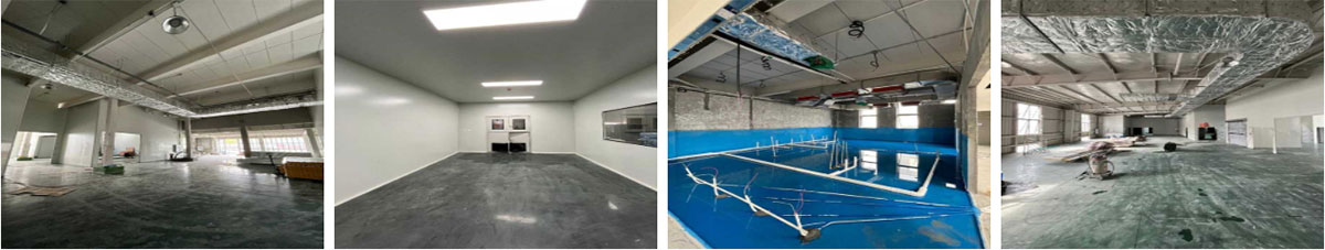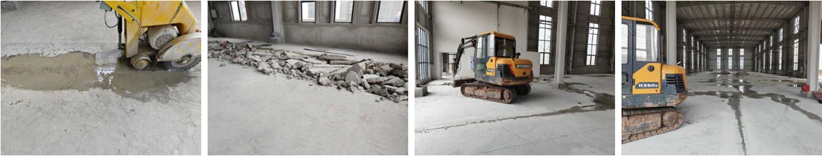 中江陶恩食品厂装修项目施工现场:车间现场放线切割