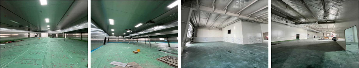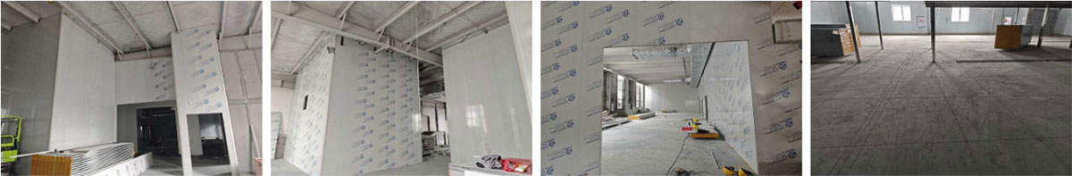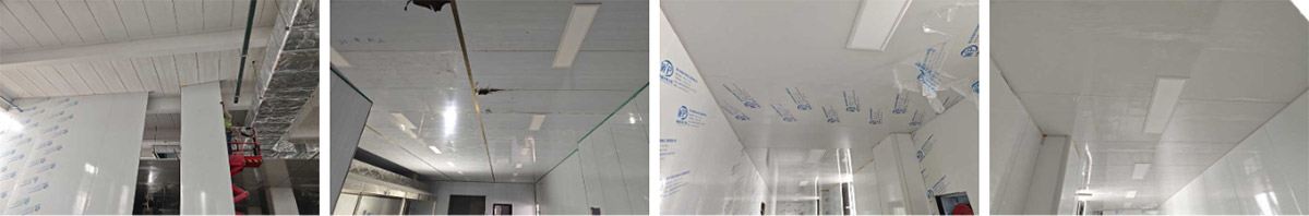 中江陶恩食品厂装修项目施工现场:净化板材施工