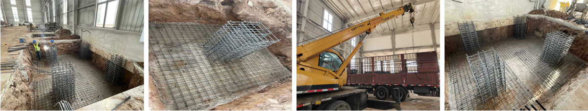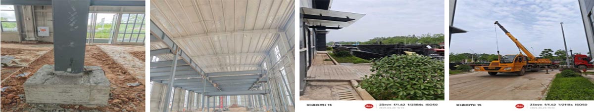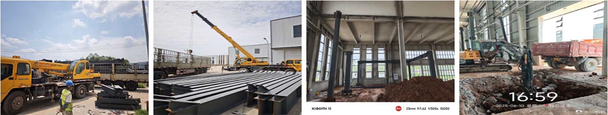 中江陶恩食品厂装修项目施工现场:钢构施工,材料到场