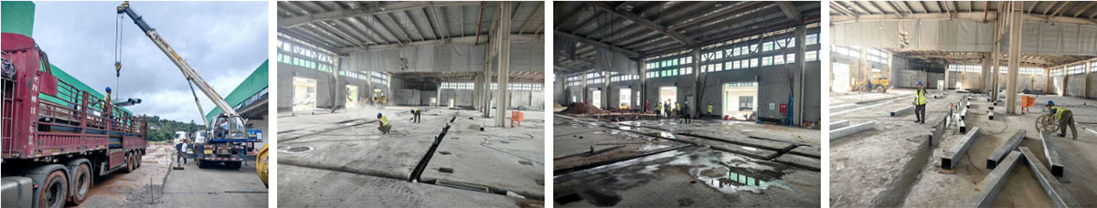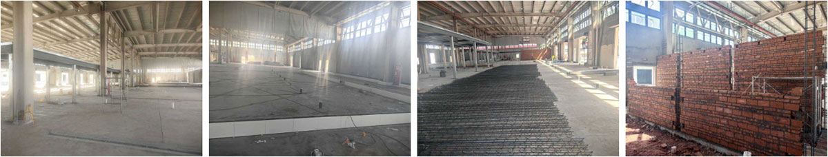 云南东之原野项目厂房施工现场:地坪施工,建材到车间现场卸货