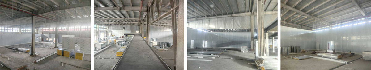 云南东之原野项目厂房施工现场:车间净化隔断施工