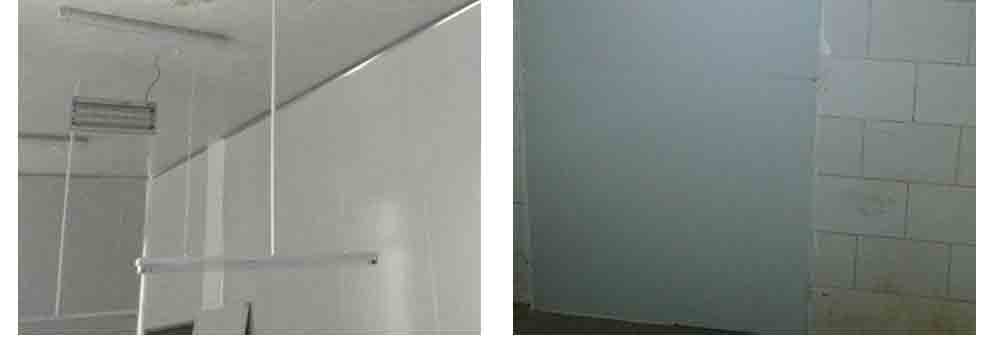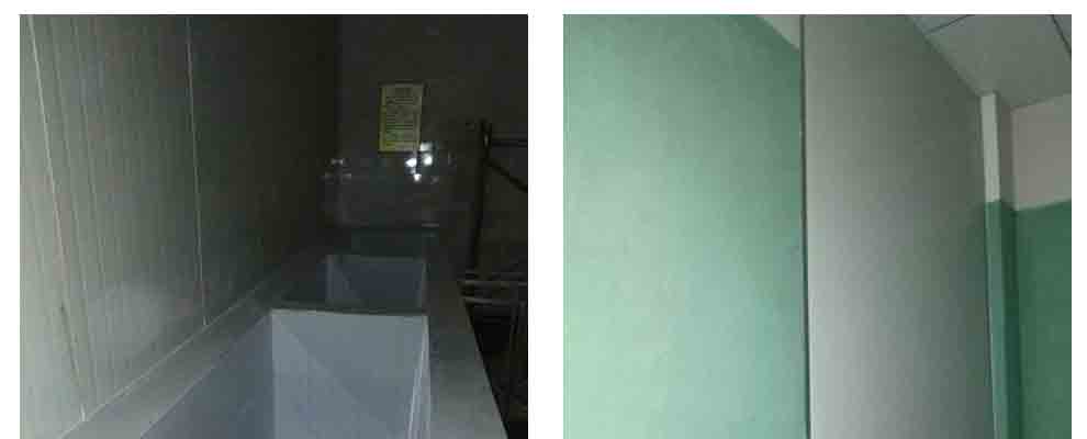 20170515 双流龙山毛肚 墙面乳胶漆完成,清洗池砌筑贴砖完成,吊顶施工完成,灯具安装、穿管敷设完成,余地面工程、线管穿线施工中