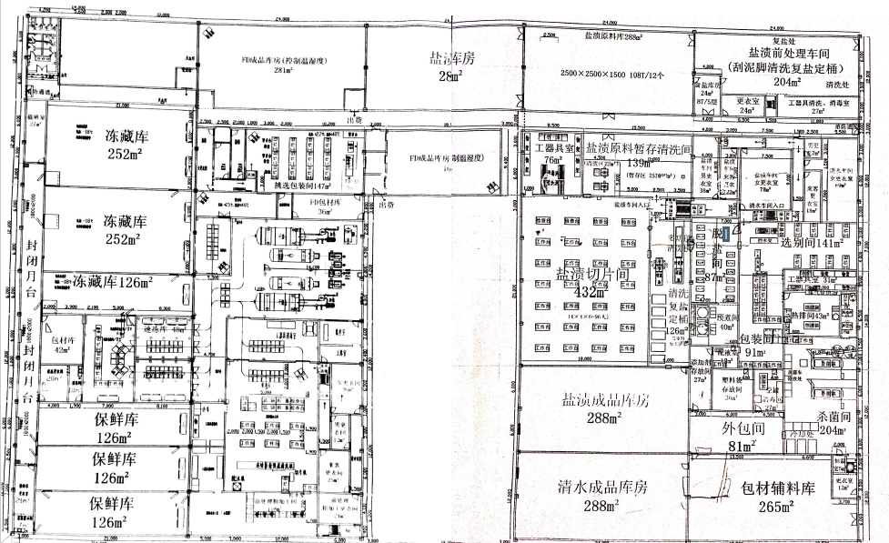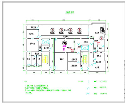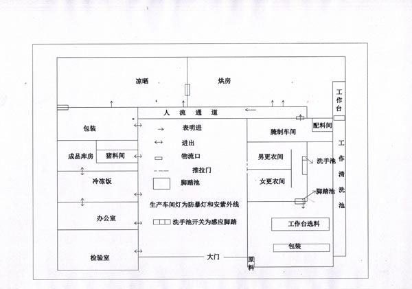 1.地面设计:生产车间地面可以用水磨石铺设,也可以防水处理后涂环氧树脂层,更衣室和车间等有需清洗排水的功能,并设计有一定的坡度。