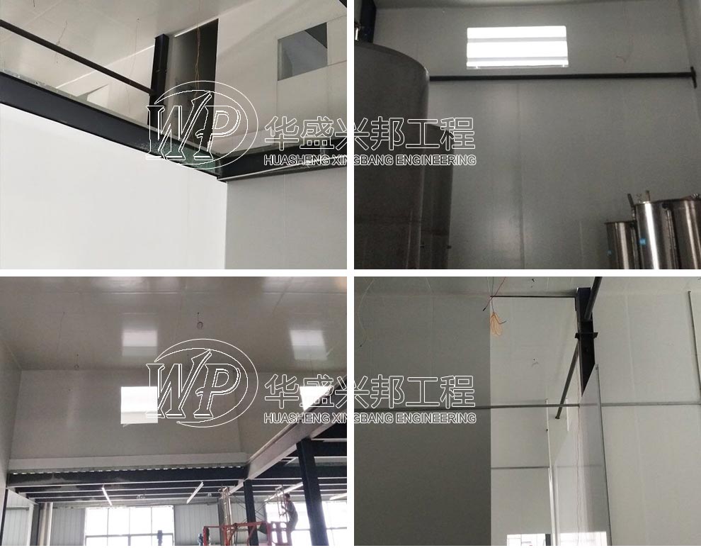 成都天厨生物科技有限公司厂房装修现场,板材施工中