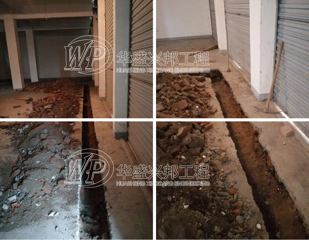华盛兴邦厂房装修现场,四川省德旌阳区林娃食品有限公司厂房装修现场,放线挖沟中