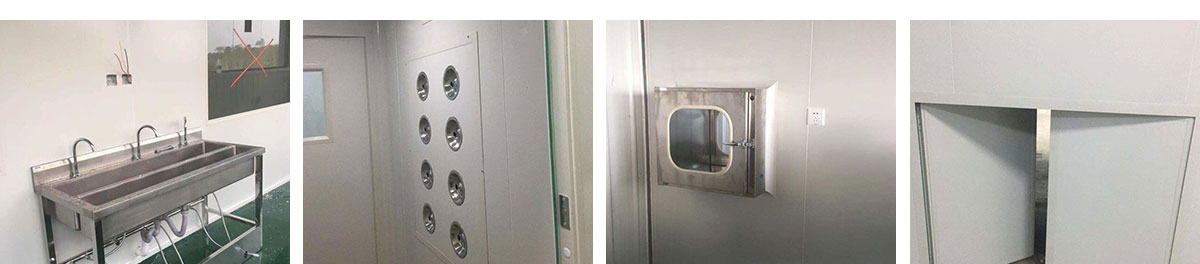 四川聚峰谷农业科技开发有限公司厂房装修现场,风淋室安装完成,传递窗安装完成,门窗完成,消毒池安装