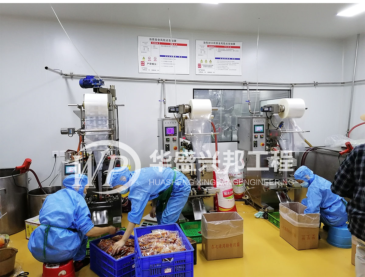 华盛兴邦承接四川春之源食品有限公司,前期厂房设计装修,企业咨询服务。后期厂房扩建厂房设计,厂房装修,生产许可证办证等服务。车间设计、装修面积3000平方米,车间共有四条生产线:半固态调味料、热加工熟肉制品、速冻调制肉制品(熟制品)、食用调味油等生产加工。