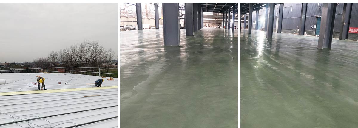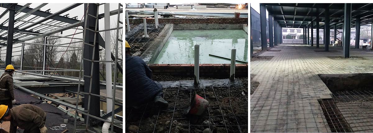 2020-12-13 四川家和原味香料有限公司土建厂房施工现场,1.屋面工程完成50%;2.地坪工程完成80%