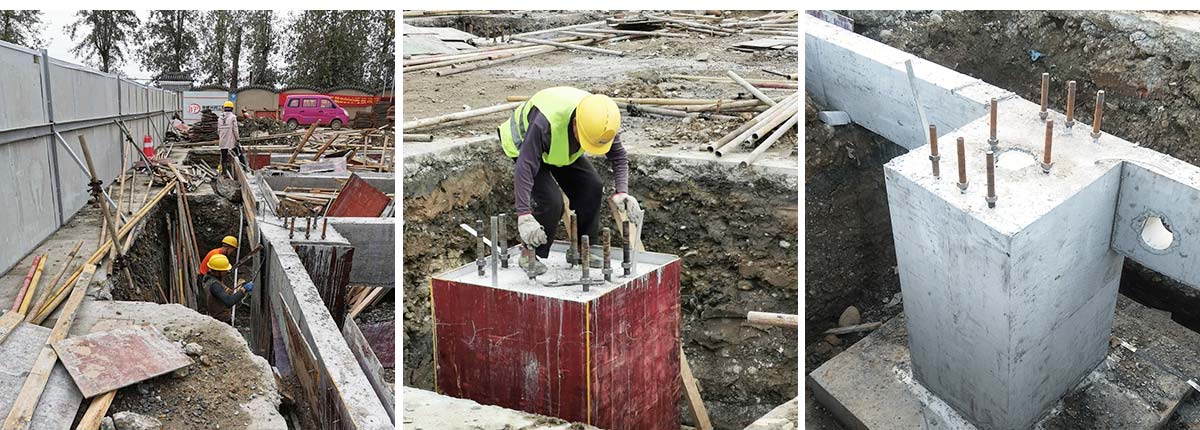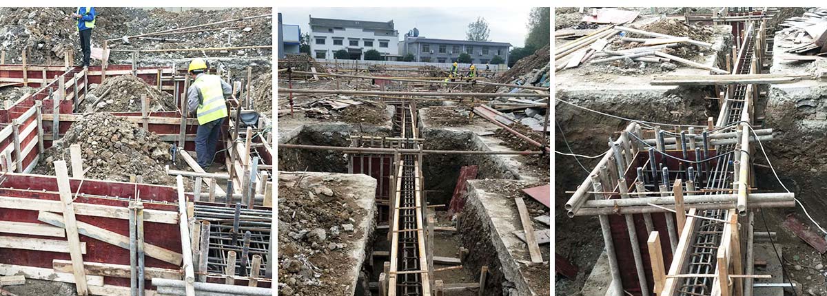 2020-10-8 四川家和原味香料有限公司土建厂房施工现场,1.承台短柱钢筋安装完成60%.;2.基坑放线完成100%;3.承台模板完成40%