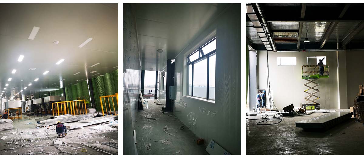 2021-01-30如实香料年净选产能8000吨技改项目——厂房土建工程施工现场:内装隔断开始施工
