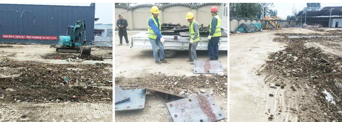 2020-10-25 四川家和原味香料有限公司土建厂房施工现场,1.基础回填完成100%,基础夯实并清理地面;2.钢构安装准备工作;3.柱脚板进场