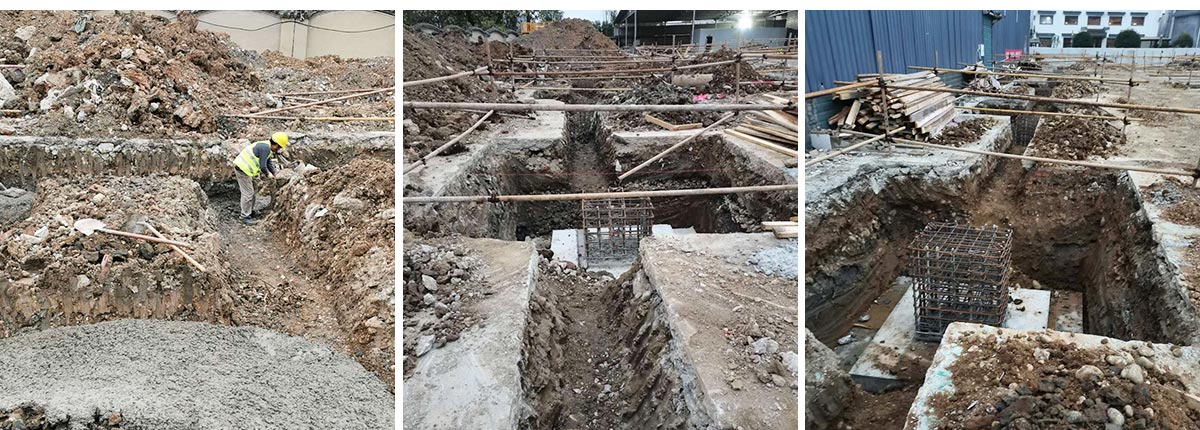 2020-10-6 四川家和原味香料有限公司土建厂房施工现场,1.基坑垫层浇筑混凝土完成60%. 2.基坑开挖完成80%