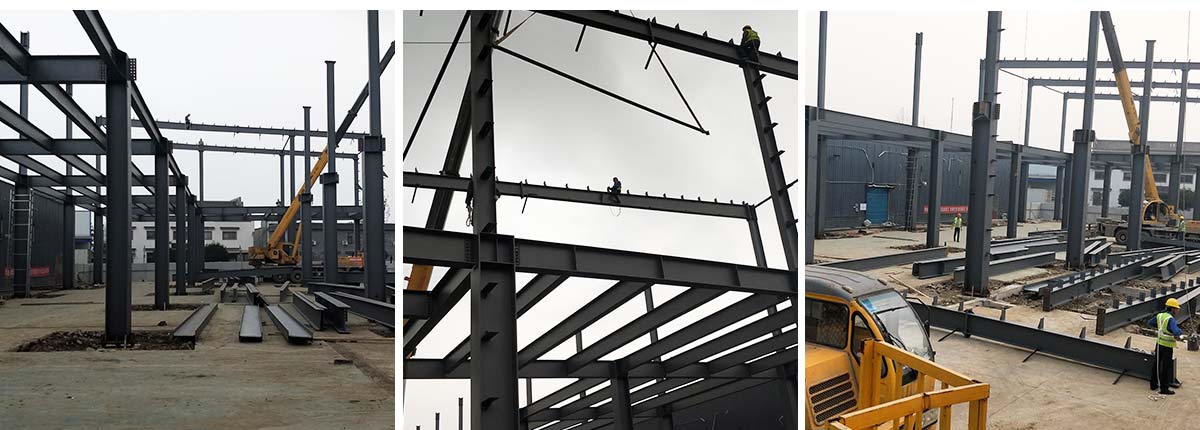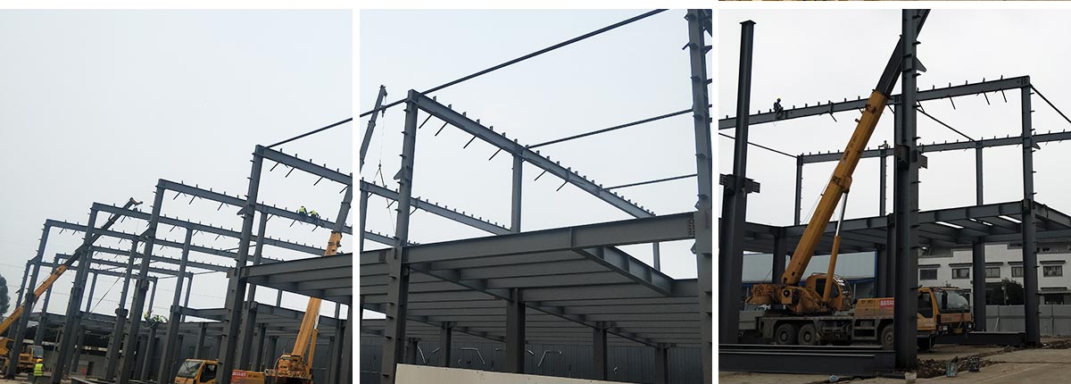 2020-11-10 四川家和原味香料有限公司土建厂房施工现场,钢构主体结构安装完成。接下来整体校正,螺栓终拧,节点焊接,油漆工作。