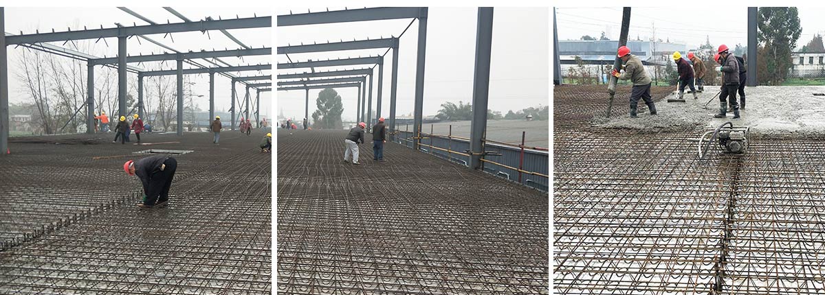 2020-11-30 四川家和原味香料有限公司土建厂房施工现场,1.二层楼板混凝土完成100%;2.楼板钢筋绑扎完成100%;3.墙檩条安装完成20%;4.二楼水电预埋完成100%;5.二楼金刚砂完成30%