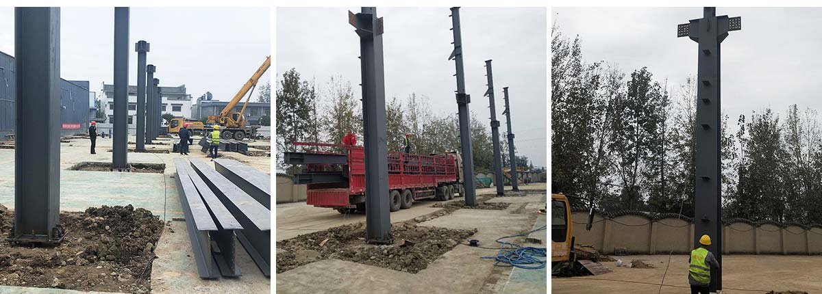 2020-10-28 四川家和原味香料有限公司土建厂房施工现场,1.钢构厂验厂。2.钢柱安装完成10%。