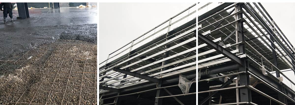 2020-11-25 四川家和原味香料有限公司土建厂房施工现场,1.楼承板安装完成85%;2.设备基础完成60%;3.钢楼梯完成85%