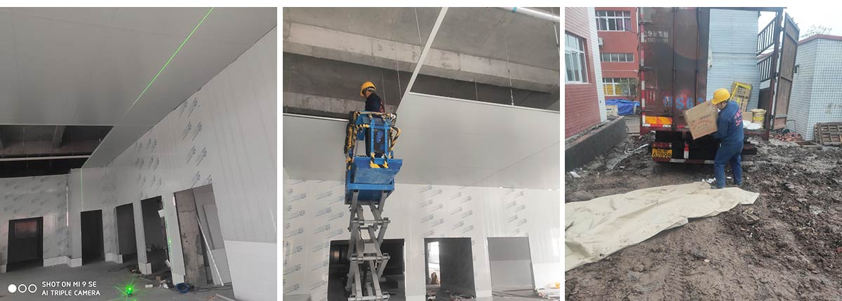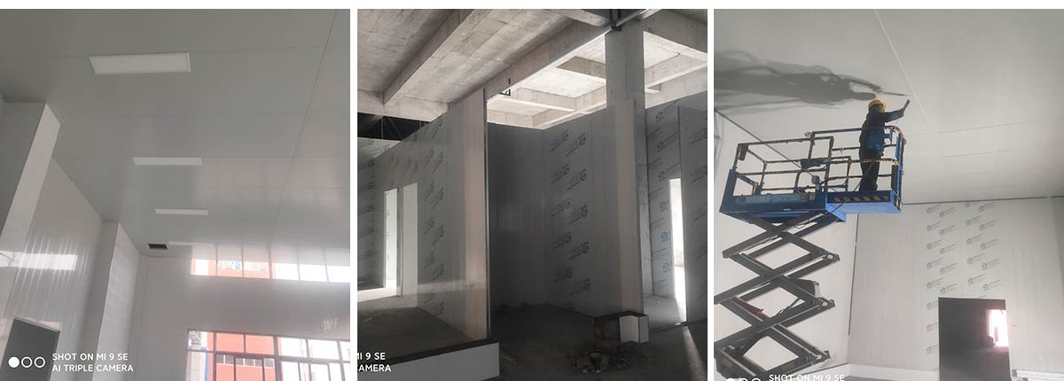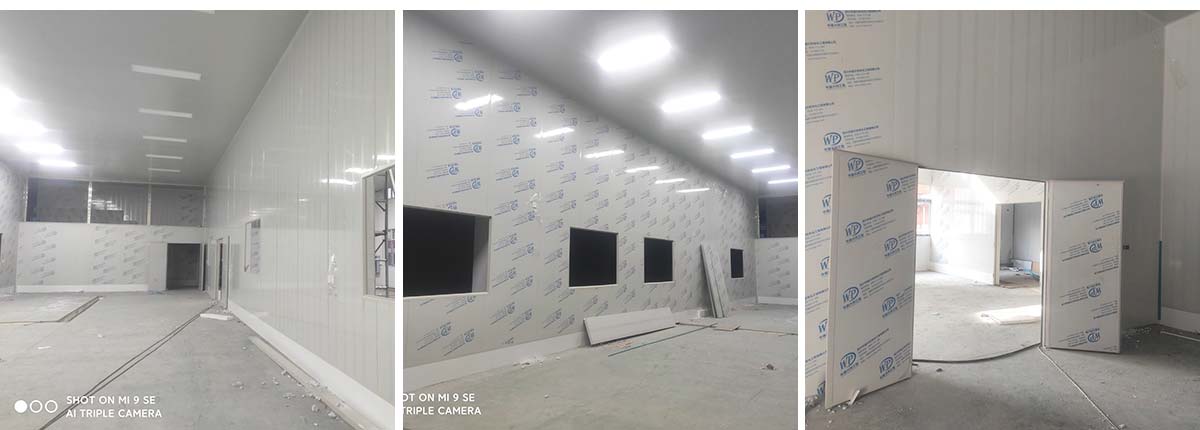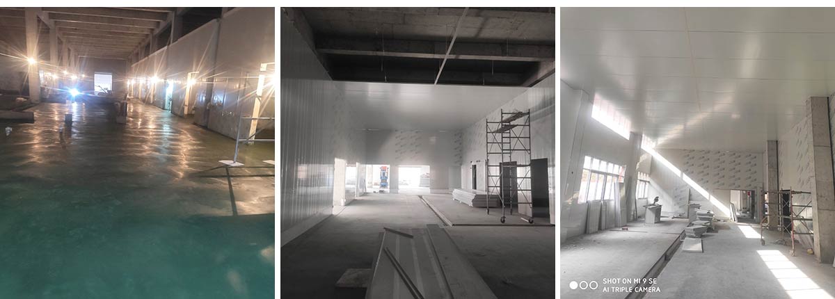 2021-01-14四川哈笼餐饮管理有限公司哈笼包子厂房装修现场:墙板顶板完成百分之九十 冻库设备安装完成 车间水电安装已经开始 乳胶漆进场
