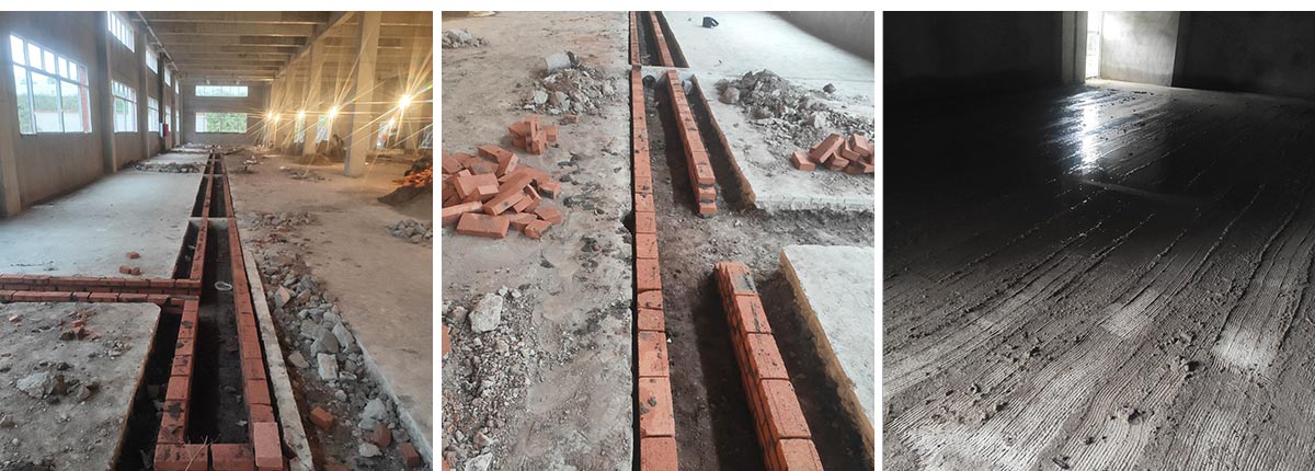 2020-10-10四川哈笼餐饮管理有限公司厂房装修现场,1.水沟砌砖完成 2.地面刨毛完成百分之五十