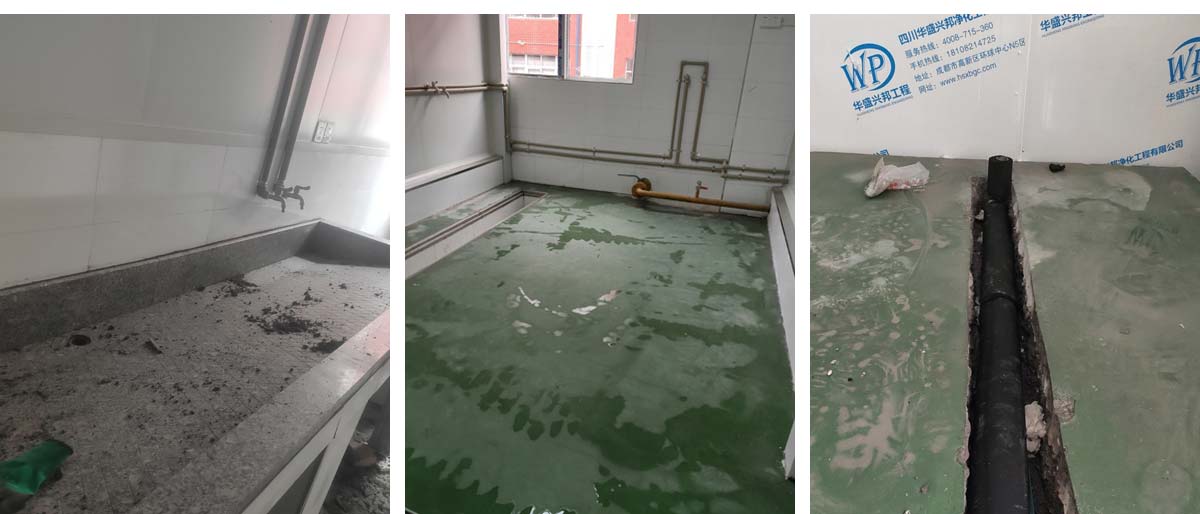 2021-3-23 四川哈笼餐饮管理有限公司厂房装修现场:洗手池、排水管道施工