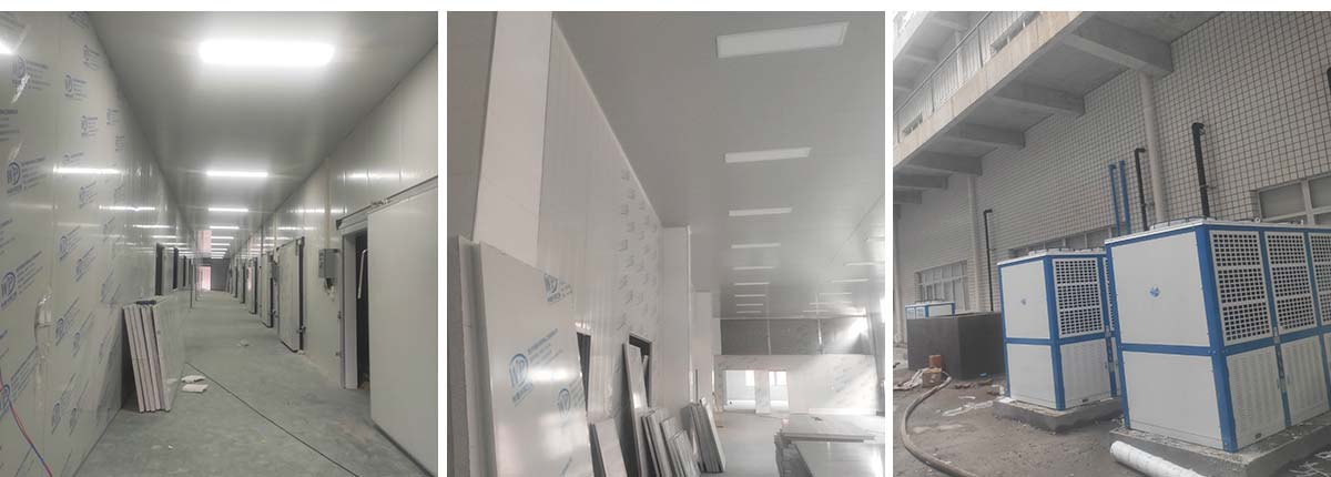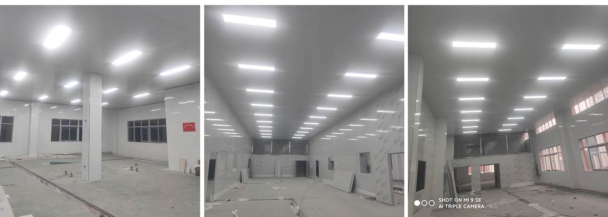 2020-12-26四川哈笼餐饮管理有限公司哈笼包子厂房装修现场:中央厨房车间灯安装完成 米面车间立板完成 冻库线路安装完成