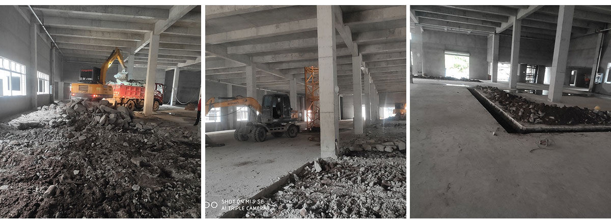 2020-10-2达州哈笼包子厂房装修现场,现场场地清理,根据图纸爱放线
