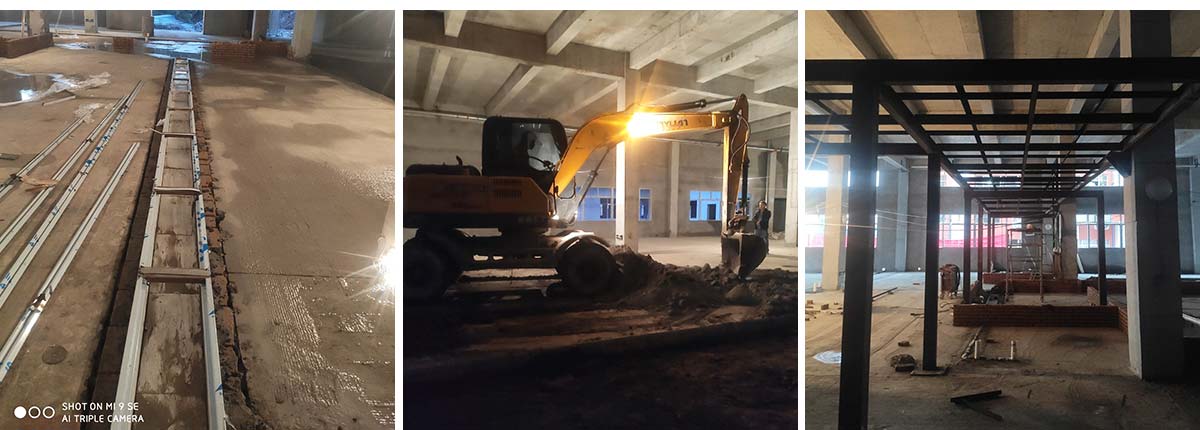 2020-10-4达州哈笼包子厂房装修现场,冻库开挖,车间排水沟开挖